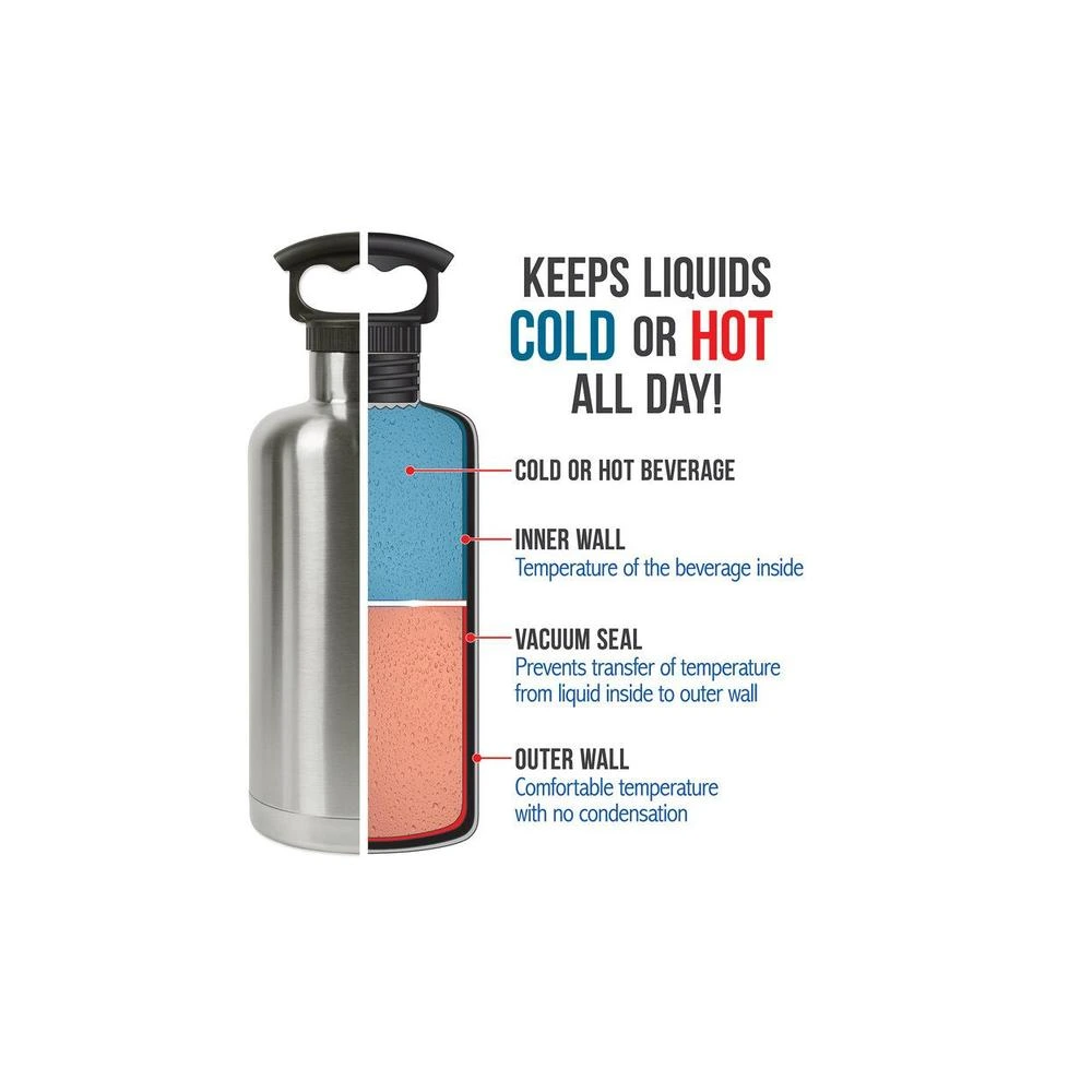 The 1.9 L growler includes a narrow mouth leak-proof 3-finger grip lid. The silicone ring ensures a snug fit to the top of the bottle to retain your beverages’ optimal temperature and is easily removable for proper cleaning. The lid is made to easily screw off and on your growler and its 3-finger design gives it a comfortable feel when carrying it around with you wherever you go.