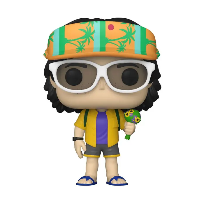 Mike is fresh off the plane from Hawkins and ready for his California vacation with Eleven and Will. He’s outfitted in his Cali-style ‘fit with flowers for Eleven.