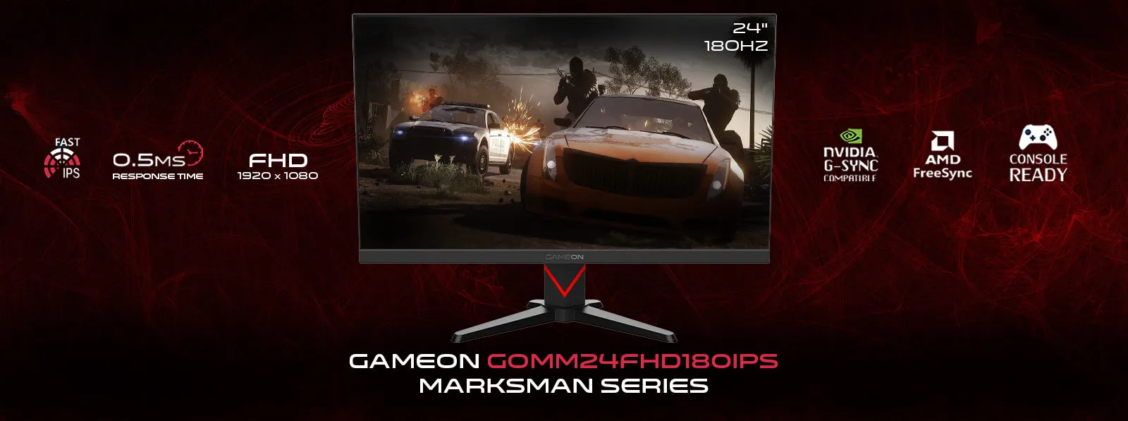 GAMEON GOMM24FHD180IPS Marksman Series 24″ FHD, 180Hz, MPRT 0.5ms, HDMI 2.1, Fast IPS Gaming Monitor (Supports PS5) – Black