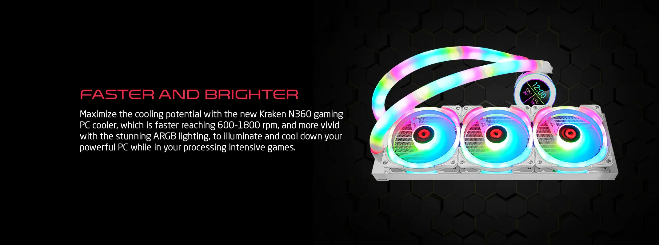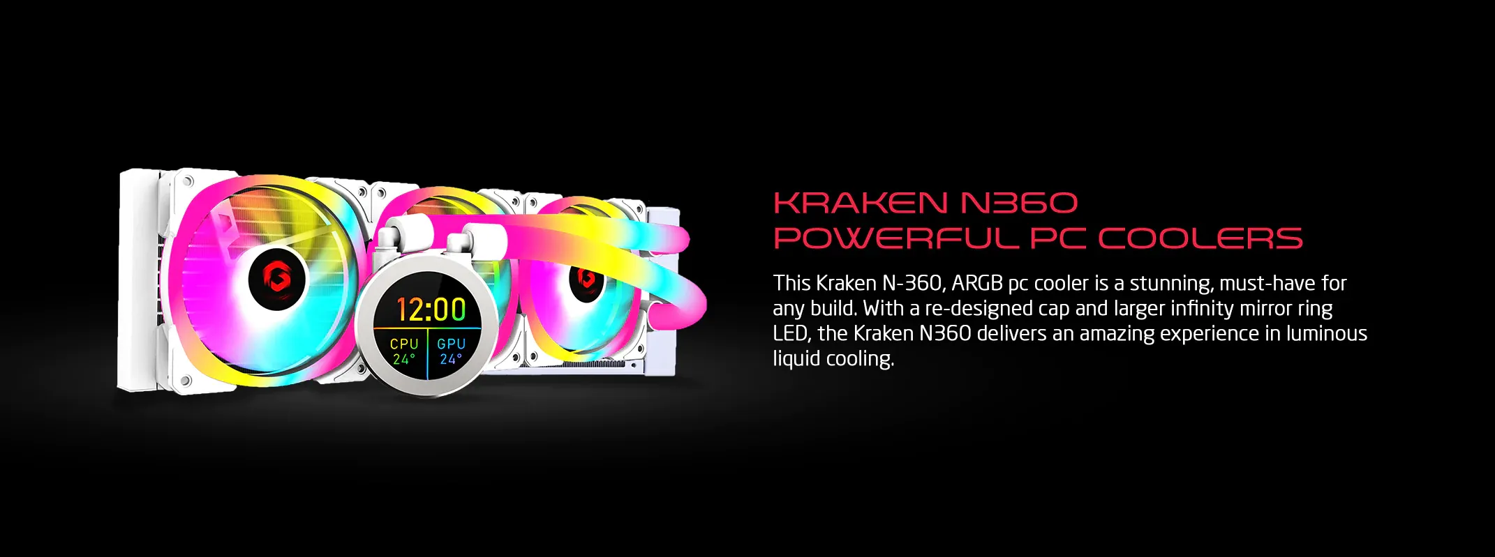 GAMEON – KRAKEN N360 LCD Display Liquid CPU Cooler 360mm With ARGB Tube – White