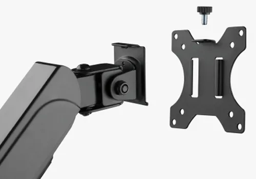 A quick-release VESA plate makes monitor installation or removal fast and easy. Built-in cable management keeps wires hidden and arranged for a cleaner look.