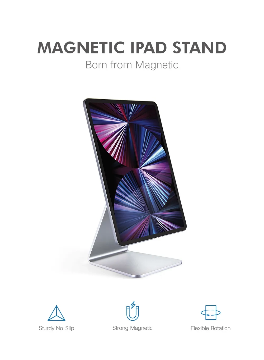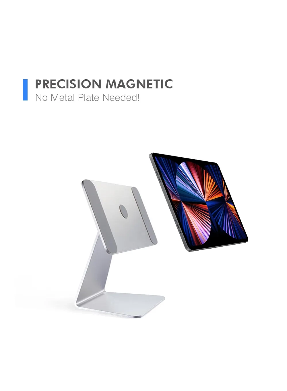 Advanced Magnetic Attachment:With strong magnetic built in a perfectly layout to align tablet, the magnetic holder For iPad can attach and hold your tablet securely and precisely in place. Protective anti-slip silicone will safeguard your tablet from accidental scratches.