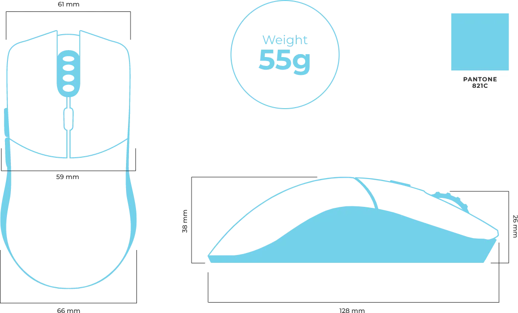 The lightest closed-shell wireless gaming mouse available. Strike swift with its 55-gram weight, pixel-perfect sensor, and rounded PTFE feet.