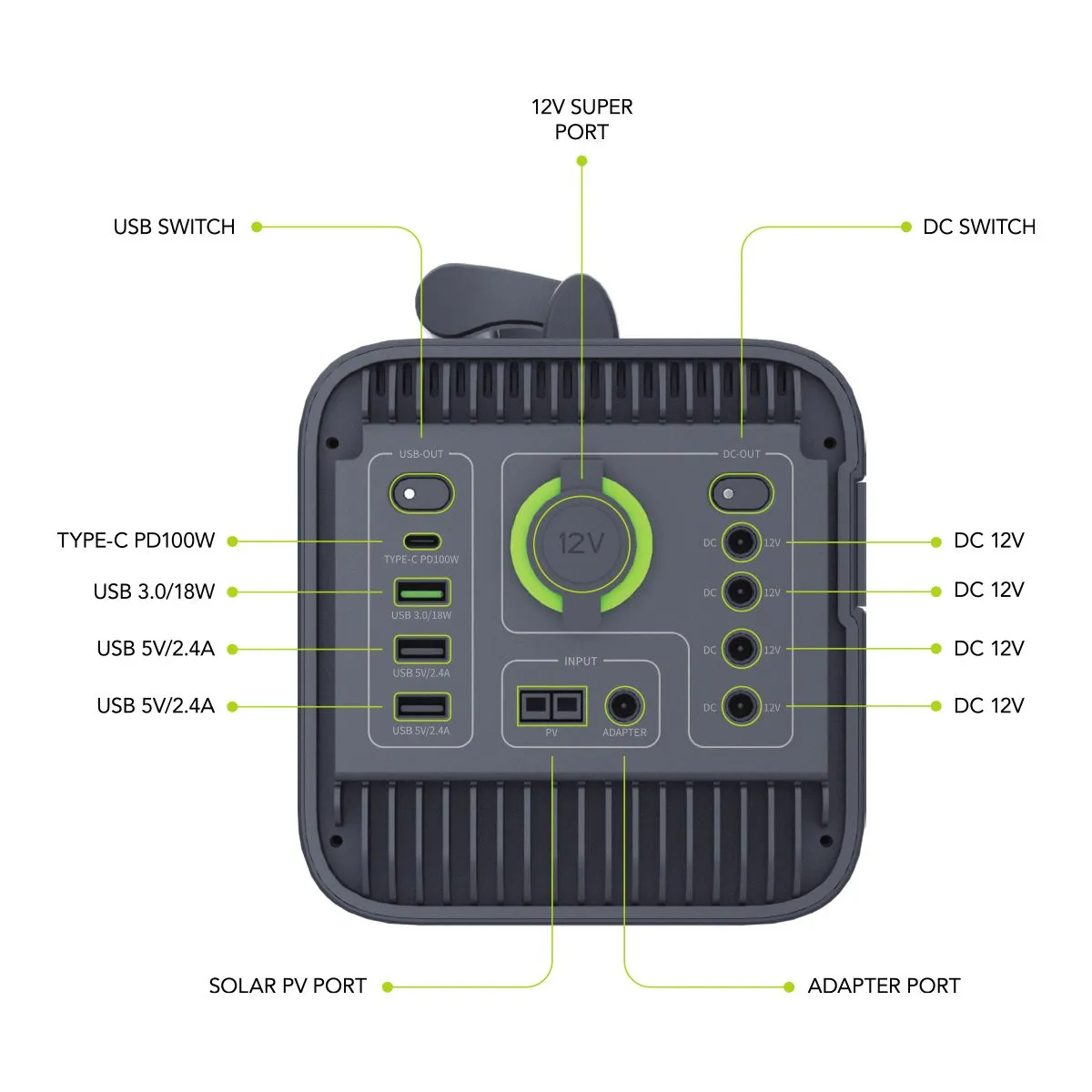 - USB-C: PD100W 5V/9V/12V/15V/3A 20V/5A Max