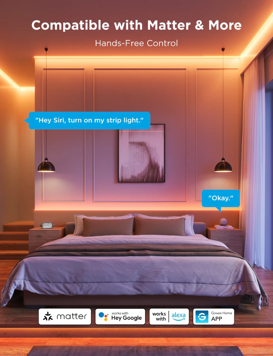Introducing Govee Next-Gen COB (Chip on Board) LED strip lights with 1260 LEDs/m for ultra-smooth lighting and higher brightness. This COB LED strip offers customizable segments, preset scenes, and smart control via Govee Home App, Matter, Alexa, and Google Assistant.
