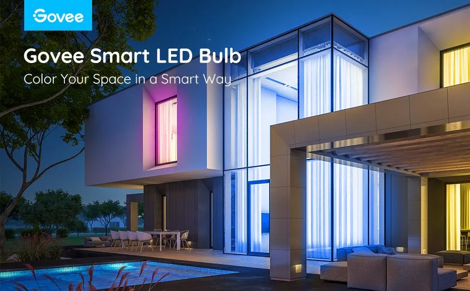 Connect with either 2.4 Ghz Wi-Fi or Bluetooth, Controlled via voice control device (Google or Alexa assistant) or via the Govee Home app, Dimmable RGBWW with over 16 million colors, 2700-6500K, 1200 Lumen