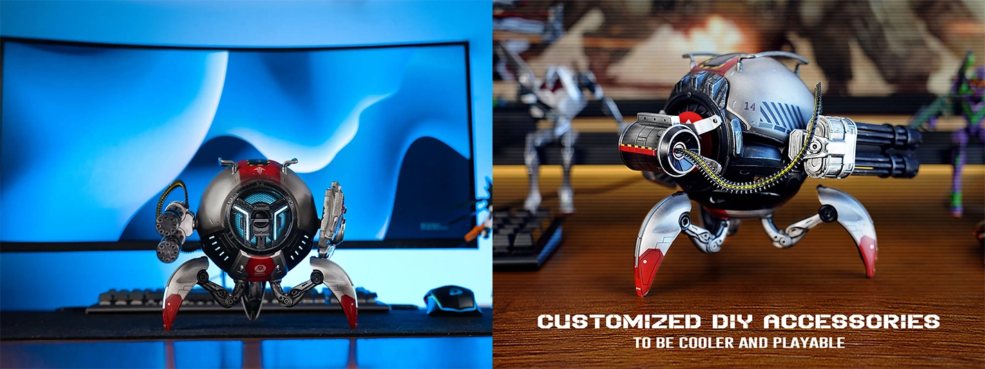 Linking technology with mecha sci-fi, the industrial design transports you to a futuristic world. The wireless speaker is built from a zinc alloy sphere, and the triangular design ensures stability and absorbs minor shocks.