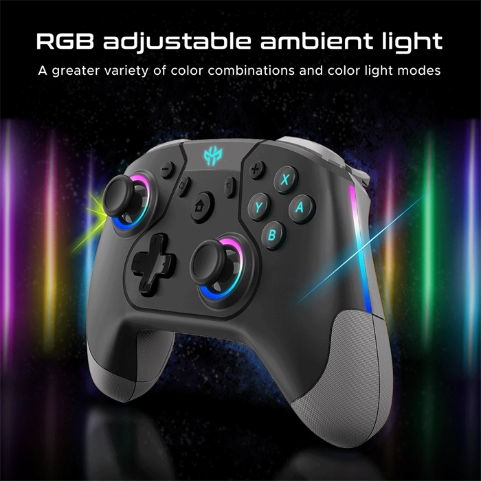 Left & right light strip, left & right joystick, total 12pcs built-in chip RGB lights, can adjust light performance.
