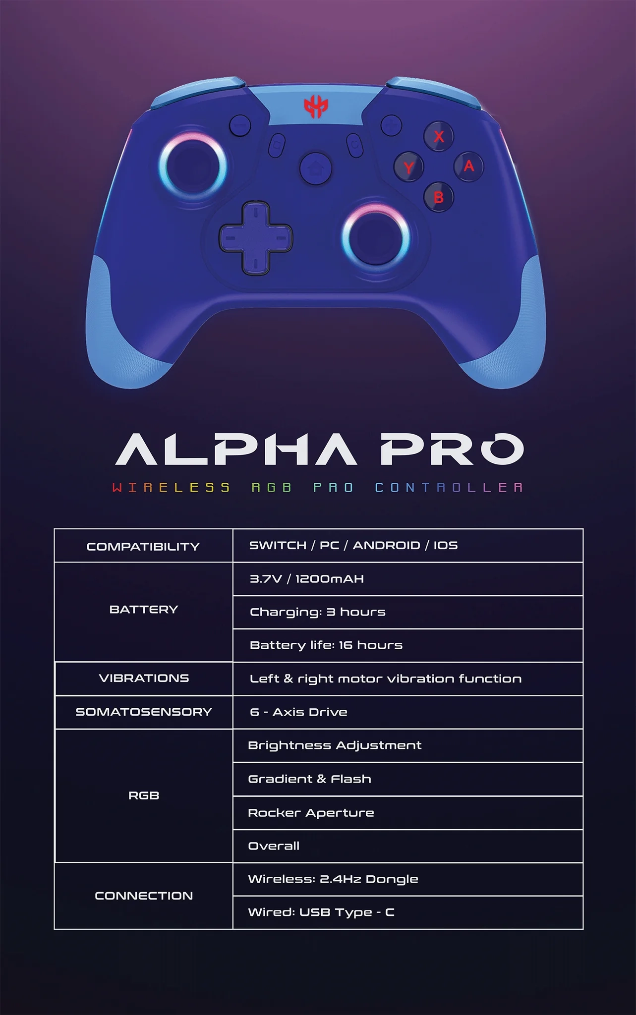 GXM Alpha 4in1 Pro Controller For Android/IOS/Switch/PC