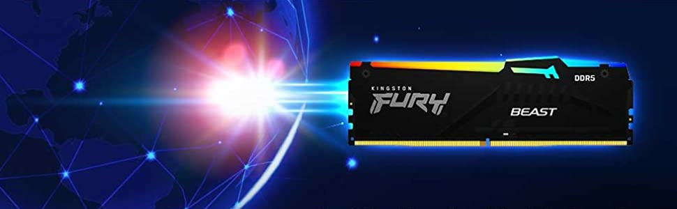 Kingston FURYâ„¢ Beast DDR5 RGB1 lets you overclock in style on next-gen gaming platforms with cutting-edge technology. Experience the superior speed advancements of DDR5 with double the banks and double the burst length.