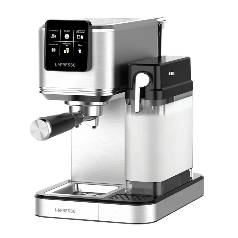 Anyone who loves to have café-quality coffee at home will love this product, and it would look great in your kitchen. It draws power from a 1350W and could pump up to 20 BAR, which is the ideal arrangement for making every cup of coffee rich and aromatic. The 1.2L of the water tank and the 1L of the milk tank have a large capacity that can give you several servings, hence the family or office usage is very much possible. The coffee machine is very versatile as it can produce hot and cold drinks; thus, it is very easy for users to try out any kind of drinks. The appliance’s milk frothing feature guarantees silky, rich charges for lattes, cappuccinos, etc., and even more. In addition to the user-friendly control panel, intuitive touch control, and self-cleaning feature, the user is offered convenience in the coffee-making process and maintenance of the machine as well. The powerful boiler that guarantees heating speed and performance consistency is also included in the package. Whether you are a lover of espresso, americano, or iced coffee, the LePresso Latteo is able to provide you with the preferred brewing experience each time.