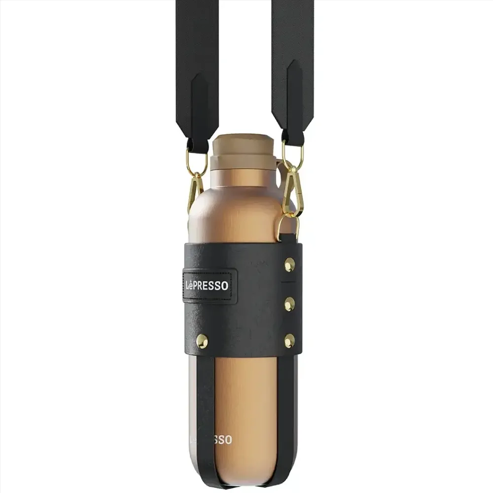 The LePresso ThermaTrail Thermos Bottle with Crossbody Strap is designed for those who enjoy hydration on the go. The 650mL container capacity of this product allows you to transport your preferred drinks, which include water, coffee, and tea. The crossbody strap provides a convenient carrying option that allows users to maintain their hand mobility and thus becomes the perfect solution for people who lead active lives. The system provides tea brewing capabilities, which enable tea enthusiasts to use it as their complete portable tea solution. This thermos unites two essential features through its high-quality stainless steel material and leather strap design, which results in both visual appeal and product resilience. The UV coating provides additional defense, while the product can handle both extremely hot and extremely cold beverages. The ThermaTrail Thermos Bottle provides an eco-friendly, sustainable solution that maintains your drinks at optimal temperatures for various activities, including traveling, commuting, and hiking.