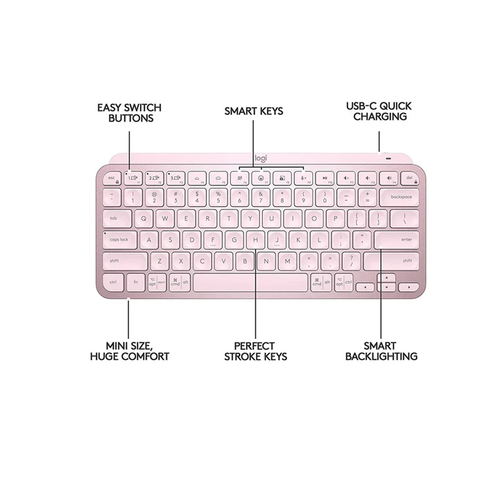 Logitech MX Keys Mini Bluetooth Illuminated Keyboard, English – Rose Pink