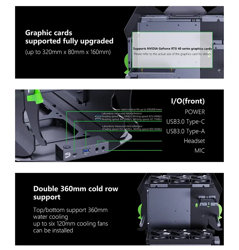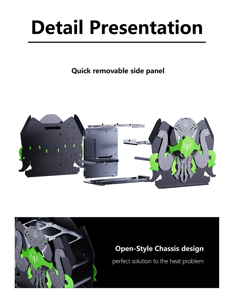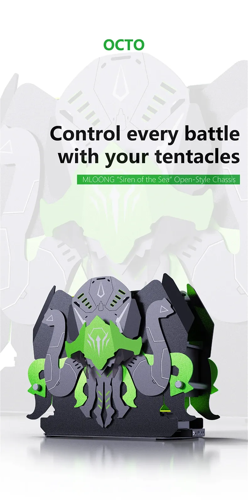 LOVINGCOOL LC-OCTO Open Style High-Performance Gaming PC Case – Kraken Green