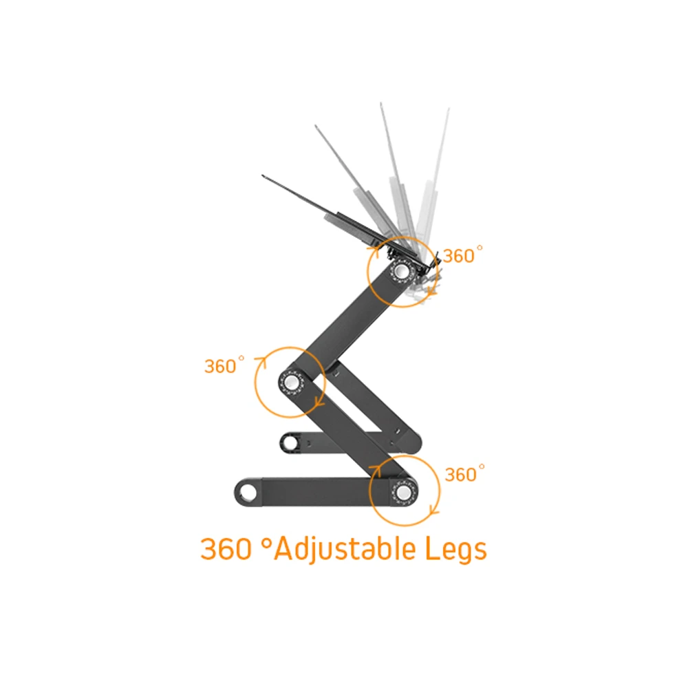 Troubled by pains after looking at laptop for a long time? No longer bend and look down at the computer when you are working on this laptop stand, develop more healthy working sitting/standing position and avoid your vision loss, good for relieve cervical lumbar fatigue and makes your work more effectively. This fully adjustable laptop desk can be folded for portability, you can carry it around. Besides, 360 °Adjustable Legs enables you to use your device at the most comfortable position, which benefits your health and helps alleviate the neck ache and shoulder pain caused by poor posture. USB cooling fan for better heat dissipation and prolong the lifetime of your device. Our laptop stand can also be used for bed/sofa lap tray, office laptop stand, a TV dinner tray, standing desk, book tray, writing desk and tablet holder.