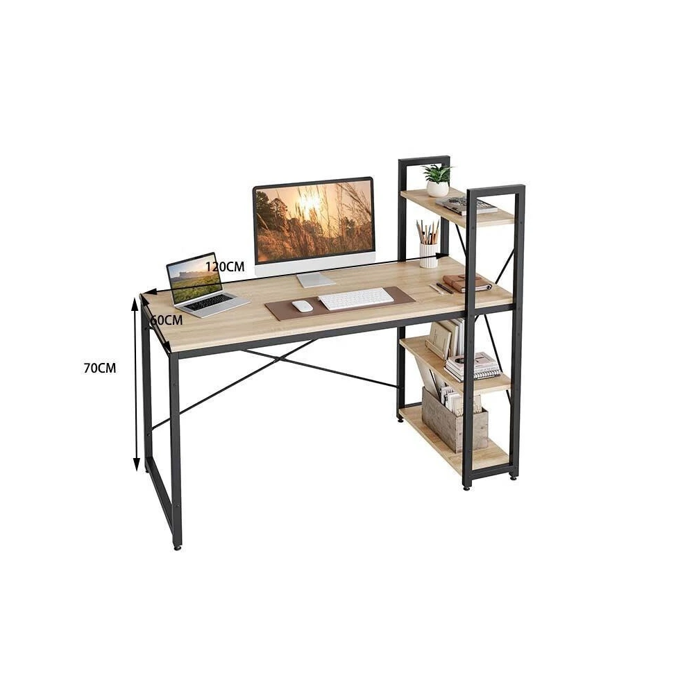 • Shelves: 4-tier open shelving (3 under desk + 1 above)