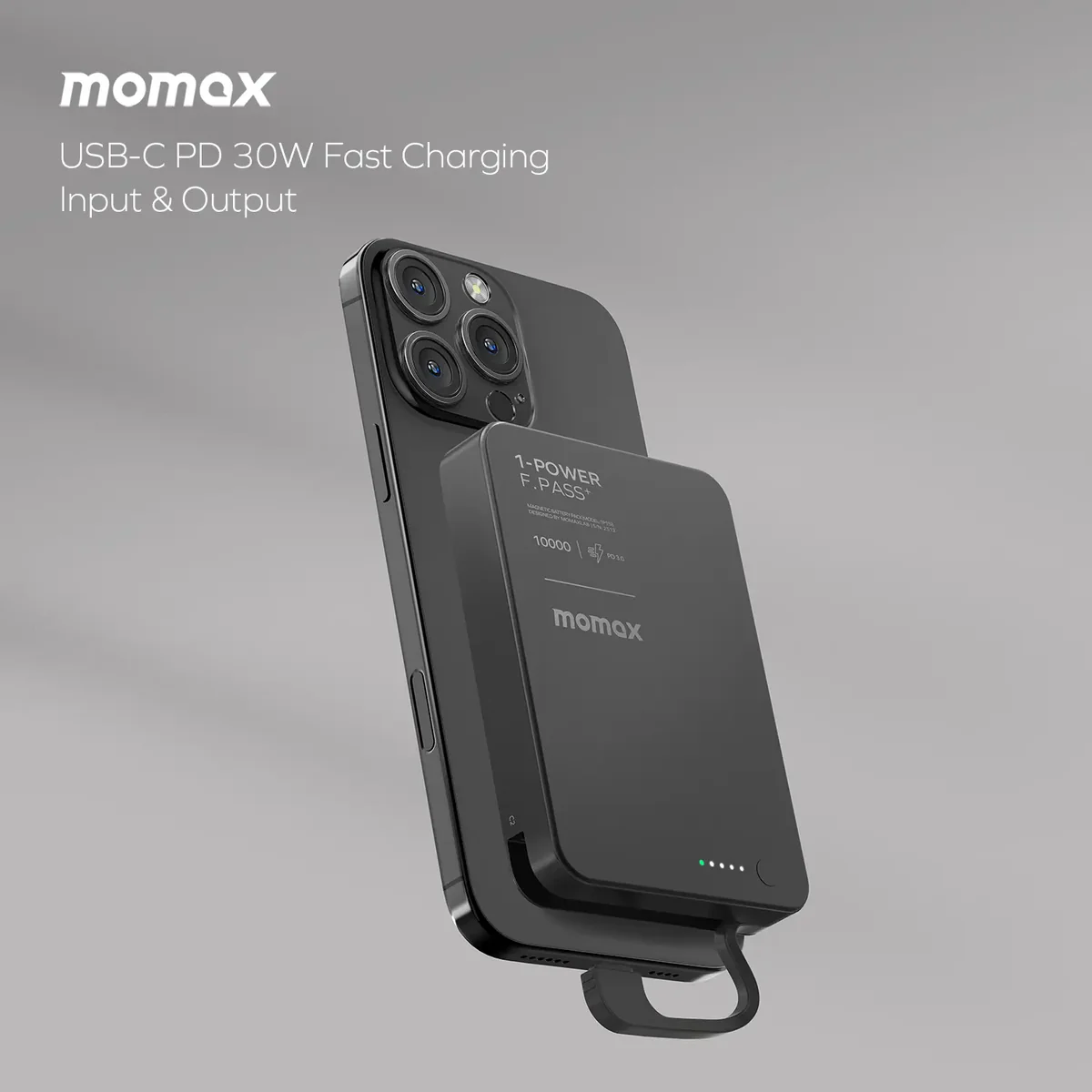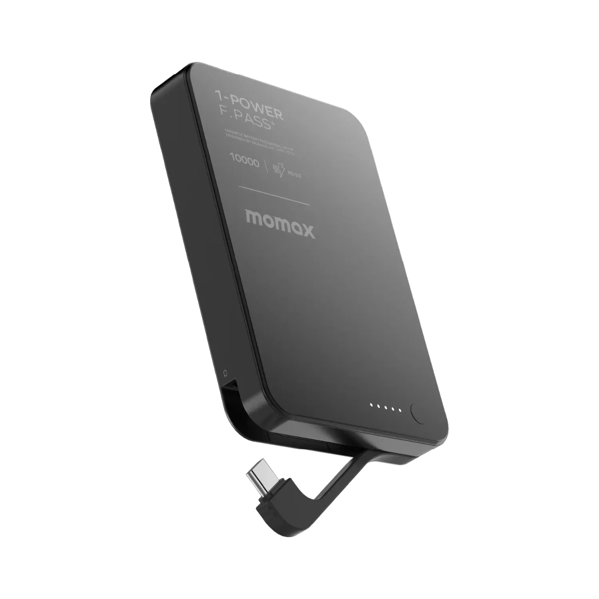 Momax 1-power F.pass⁺ 10000mah Magnetic Battery Pack With Built-in Cable – Black