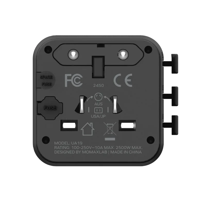 With our 1-World Travel Charger, you get a standard US outlet plus a universal socket that accepts plugs from various countries like the UK, AU, EU, and even China. Power up all your devices without the fuss of finding the right charger.