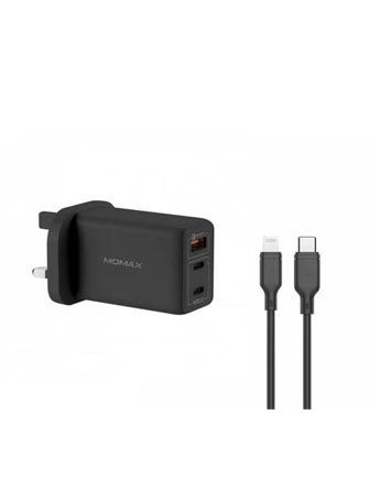 - One Plug 65W 3-port GaN Charger(UK Plug) – Black