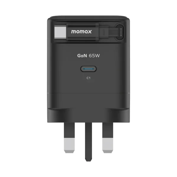 Momax Gan 65w Charger With Retractable Usb-c Cable – Black