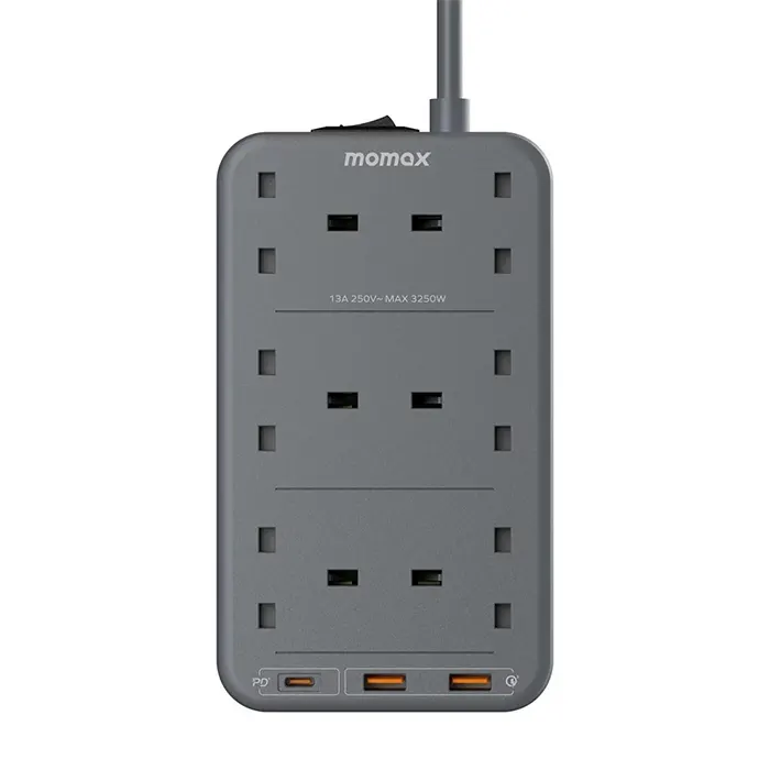 Momax ONEPLUG 6-OutLet Power Strip With USB (US12UK) – Space Grey
