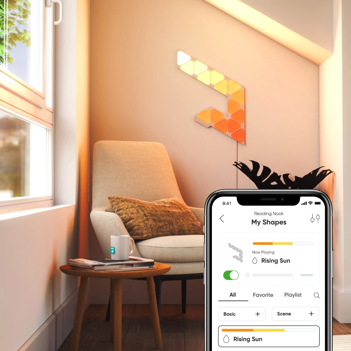 Nanoleaf Shapes Mini Triangles Starter Kit with an ultra-thin panel design come with everything you need to create your own statement or accent lighting. Mix and match shapes to create next-level designs. Packed with all the smart features, such as Rhythm Music Visualizer, Screen Mirror, Touch, Schedules, and more! Instal on any flat surface with included Mounting Tape; no additional tools required.