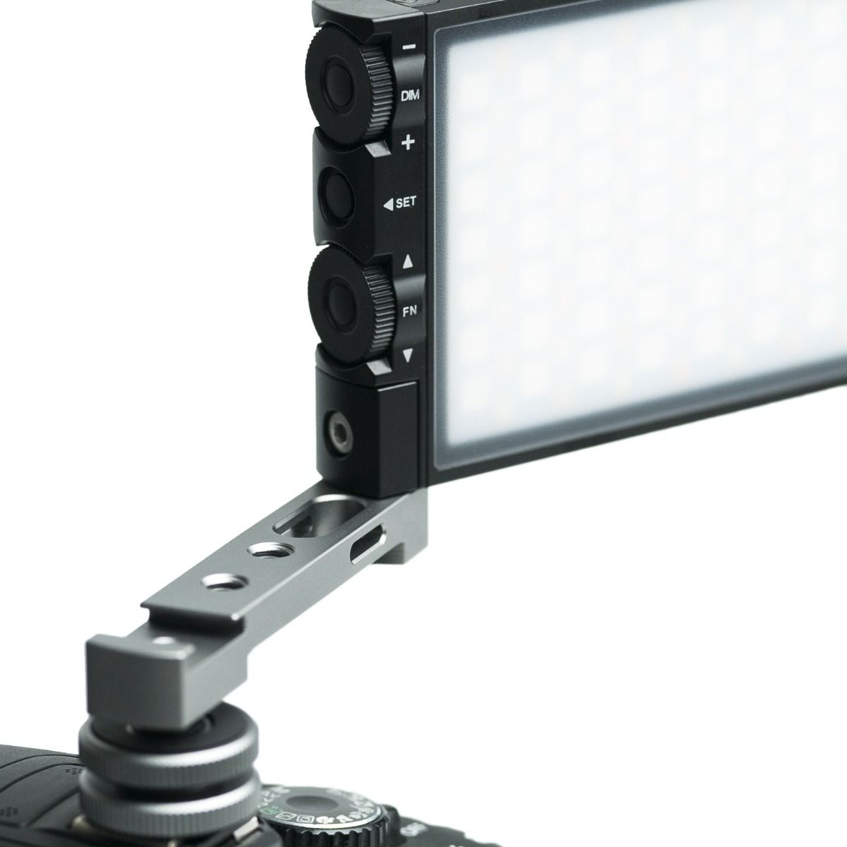 Rotate Valo R in the desired direction when mounted on your camera, while still having space to mount another accessory using the built-in hot shoe mount.