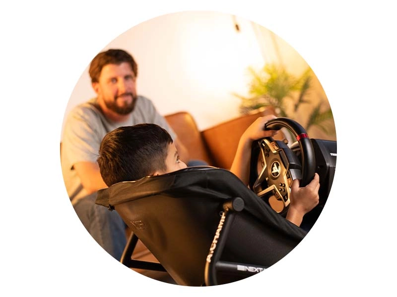 Introducing the Next Level Racing® Go Kart Plus cockpit, designed for the whole family to enjoy hours of racing fun. Whether you’re training for competitive go-karting events or creating exciting family race days, this cockpit is built to accommodate it all. Not only is this versatile cockpit perfect for children and adults alike, offering a thrilling racing experience for all ages, but it also allows for customization. Also, with adjustable seat angle, seat distance slider, and pedal distance knobs, you can choose from Go Kart positioning to GT-style racing. Furthermore, its compact footprint and versatile design make it perfect for family bonding and competitive training. Get ready to experience the joy of racing together with the Next Level Racing® Go Kart Plus cockpit.