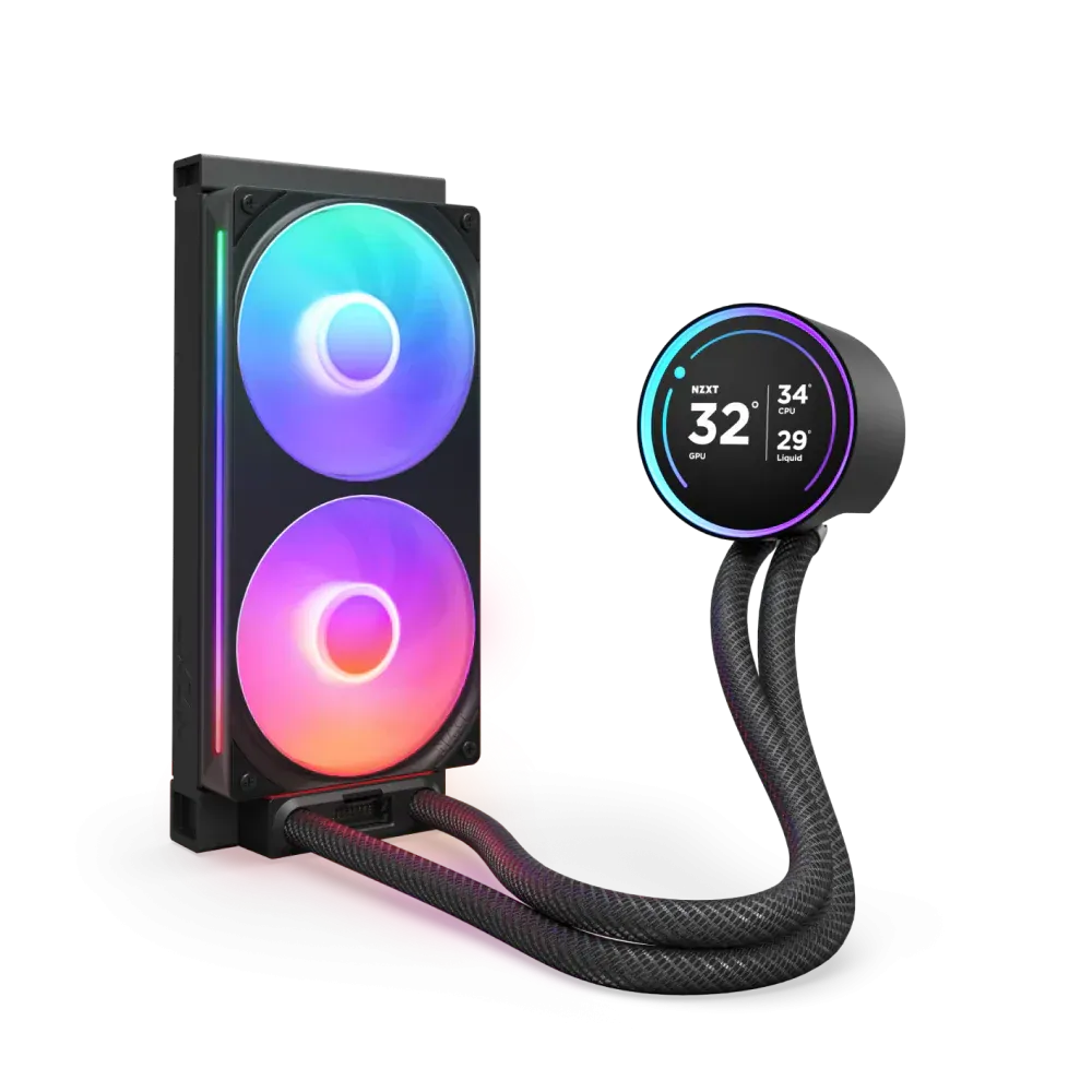 Back and better than ever, the Kraken Elite is powered by the custom-designed NZXT Turbine pump, delivering a remarkable 10%* boost in CPU cooling performance. The stunning 2.72-inch IPS screen with a dynamic RGB ring offers limitless personalization options, making the Kraken Elite an eye-catching focal point for any build.