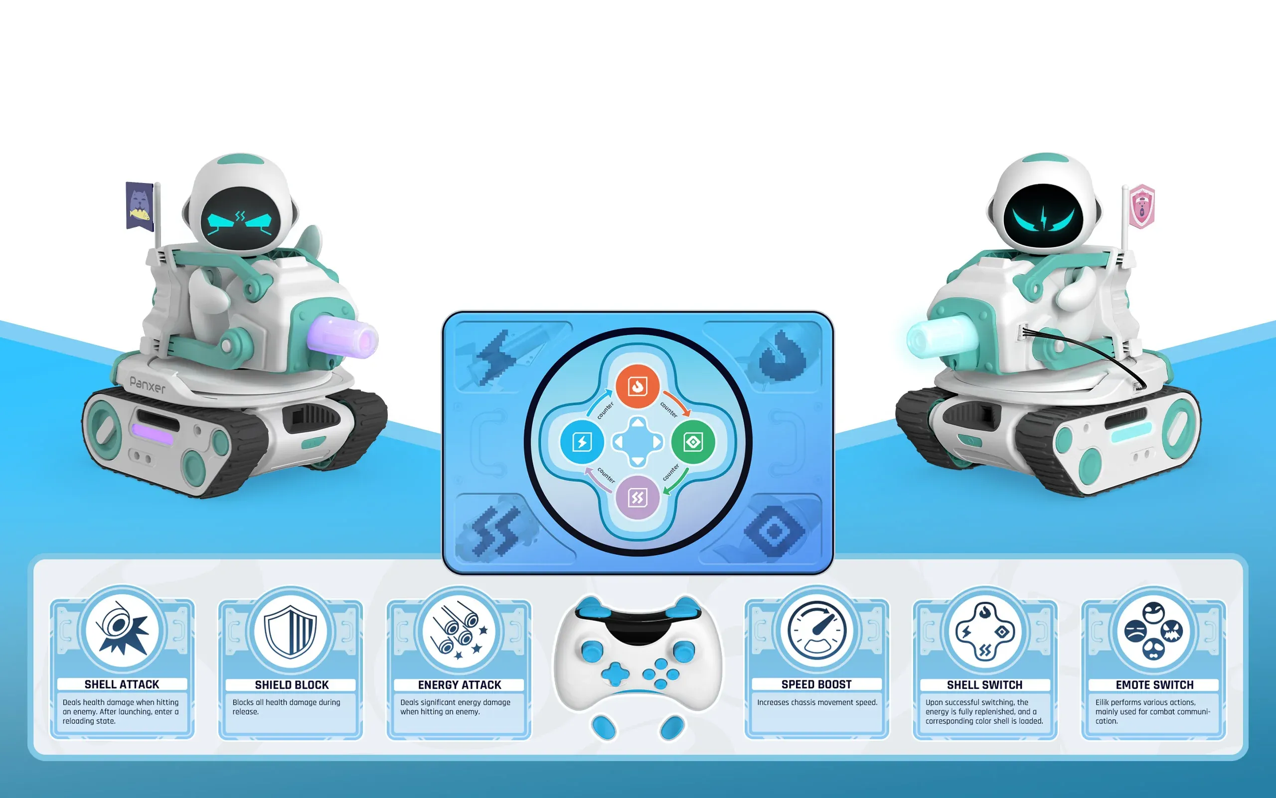 You can fight alongside Eilik, controlling Panxer to engage in an intense tank battle with family and friends, or challenge Eilik to a duel, picking up the controller to launch a fierce attack on Panxer driver Eilik.