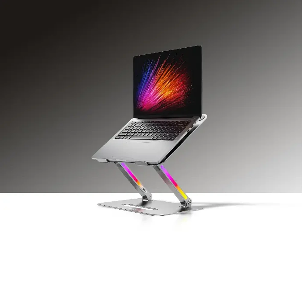 The Porodo 17.3″ Aluminum Laptop Stand-Grey is built of aluminum alloy and silicone and thus gives strong stability and durability for devices ranging from 14 to 17.3″. This folding design guarantees extremely easy transport, while the angle is adjustable for comfort during extended use. The stand employs a 450mAh battery and a Type-C charging port. The stand has built-in RGB lights, which provide a very modern feel to your workspace. With dimensions of 28.5×23.5×4.5 cm, this stand provides a comforting and elevated laptop platform, allowing for additional ventilation. This stand is just the perfect combination of style, functionality, and convenience for laptop use at home or in the office.