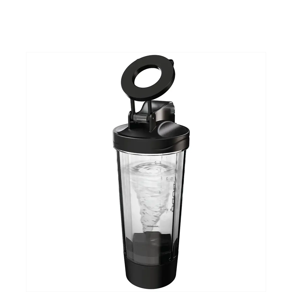 The Porodo Lifestyle Grip & Mix Protein Shaker Bottle in black is nothing less than the perfect companion for your fitness regime. With a capacity of 700mL, this bottle allows you to store your protein shakes and drinks comfortably. The motor of the shaker runs at a speed of 7500RPM, which makes the mixing very smooth and quick, thus yielding perfectly blended shakes every time. The durable battery of 600mAh gives an option of up to 30 days of usage on a single charge. The Type-C charging interface offers fast charging in just 2 hours. The shaker made from BPA-free PP and Tritan materials is not only strong but also health-safe. In addition, the shaker is supplied with a magnetic phone holder which permits you to keep your phone nearby during the time you breathe mixing your drinks. The active portable lifestyle can still count on the Porodo Lifestyle Protein Shaker Bottle for ease, strength, and dependability, whether you go to the gym or just take a short excursion.