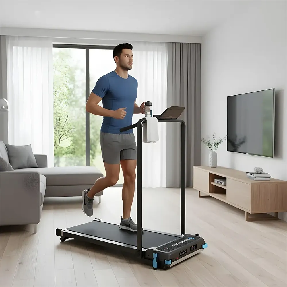 The Powerology 2-in-1 Foldable Treadmill With Massage Pad – Black Is The Best Home Fitness Solution For Anyone Who Needs Cardio And Relaxation At The Same Time. Its Strong Running Belt, 100 × 40 Cm, Allows The Treadmill To Run At Different Speeds From 1 To 10 Km/h To Match A Wide Variety Of Walking And Jogging Exercises. Besides, The Treadmill Comes With A Massage Pad That Has Five Adjustable Massage Modes (P1–p5) For Easing Foot Pressure And Improving Recovery After Workouts. The Treadmill Is Foldable For Easy Storage, Has A Phone Or Tablet Holder For Your Entertainment, And A Remote Control For Easy Use, All Of Which Are Convenience Features. The Maximum Load Capacity Of 150 Kg Makes It Suitable For Most Users. The Treadmill’s Multifunctionality Makes It Easy To Switch Between Running And Foot Massage, Thus Combining Fitness And Relaxation In One Black, Sleek Unit. Have Your Health Goals Achieved Effortlessly While Being Comfortable At The Same Time.