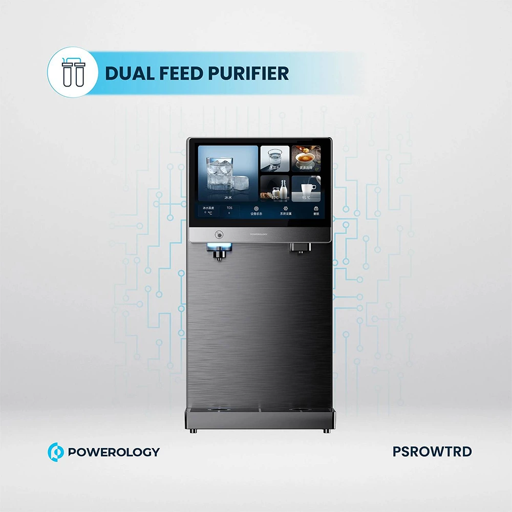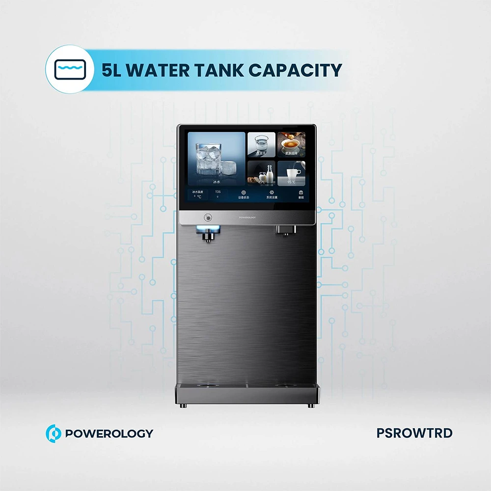 The Powerology 4-Stage Reverse Osmosis Water Purifier Dispenser blends advanced technology with modern ease to provide fresh, perfectly tempered water. Its dual-feed purifier and 4-stage filter ensure excellent water for cooking and drinking. Its large 5L water tank meets the needs of an office or a family. It supplies 3 liters of cold water per hour cooled from 4°C to 8°C. The dispenser can deliver up to 18 liters per hour for hot water. It reaches 90°C in just 3 seconds for hot drinks. Switching between the hot and cold water settings is simple. The 7-inch touch display has easy-to-use controls. With a rated power of 2300W and a UK 3-pin plug, it is both efficient and reliable. Its classy black style suits its features. Advanced filtration ensures each drink is safe and refreshing. The Powerology 4-Stage Reverse Osmosis Water Purifier Dispenser is the ideal addition to your house or place of business, whether you’re in need of a fast cup of tea or refreshing water on a hot day.
