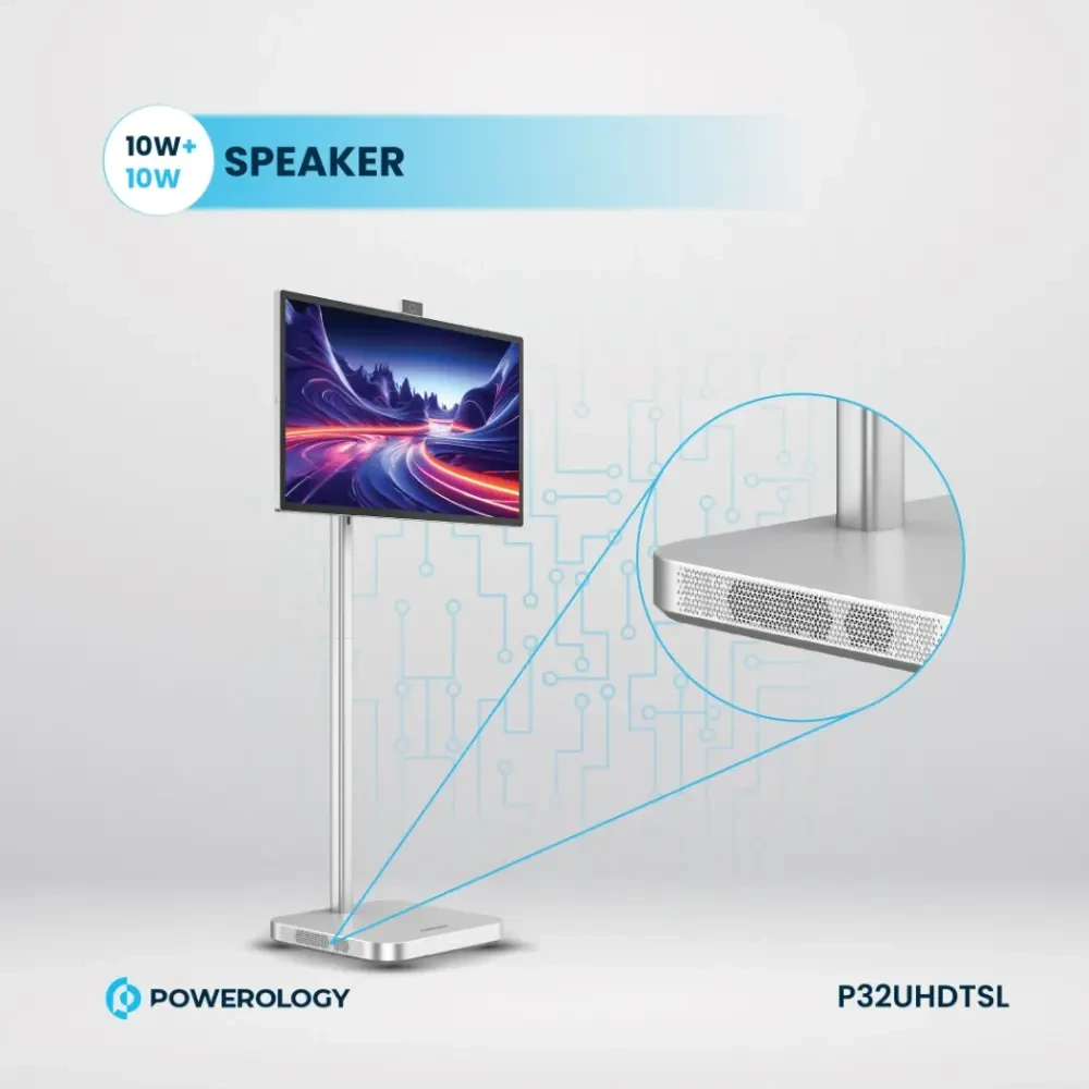 The 32-inch Google 4k Powerology Screen and 4k Camera have made significant strides in enhancing the viewing experiences of owners. This product has Android 13, the smart screen features 8GB of RAM and 128GB storage. It allows space for your apps alongside increased availability, which improves performance and additional space for your media. This 9800 mAh battery gives a working time of up to 4 hours, and the 2.5 hours of rechargeable time get you back on your task in no time. Now, the audio portrayed here is beyond clarity in categories through 10 +10W speakers; even connecting is simplified through WiFi 2.4 GHz, 5GHz, Wi-Fi6, and Bluetooth V5.2 without any visible cable connections hindering this. It can take HD pictures, has a detachable 8 Megapixel camera, which is very good for video calls and online shows, and enables easy wiring to various devices by supporting HDMI 2.0 and Type-C 3.1. This implies that such features as the 32 Inch Powerology Google 4K Screen are both convenient, only instead of the usual 5W or 12V power outlet of, say, a store, such commodities have 120W power brick and a standard wall socket of a UK 3-pin type.