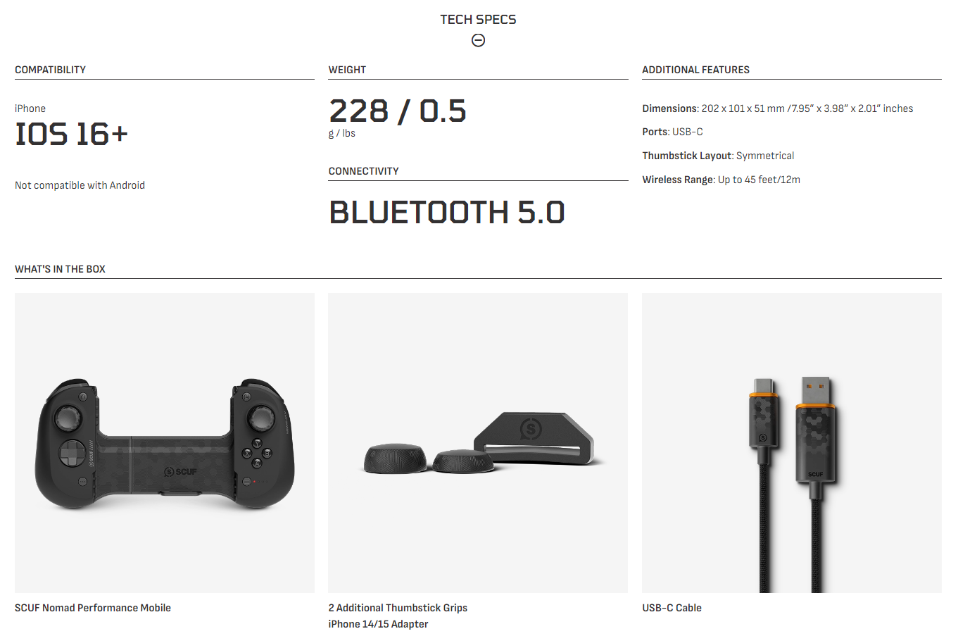 Scuf Nomad Mobile Gaming Controller For Iphone – Black