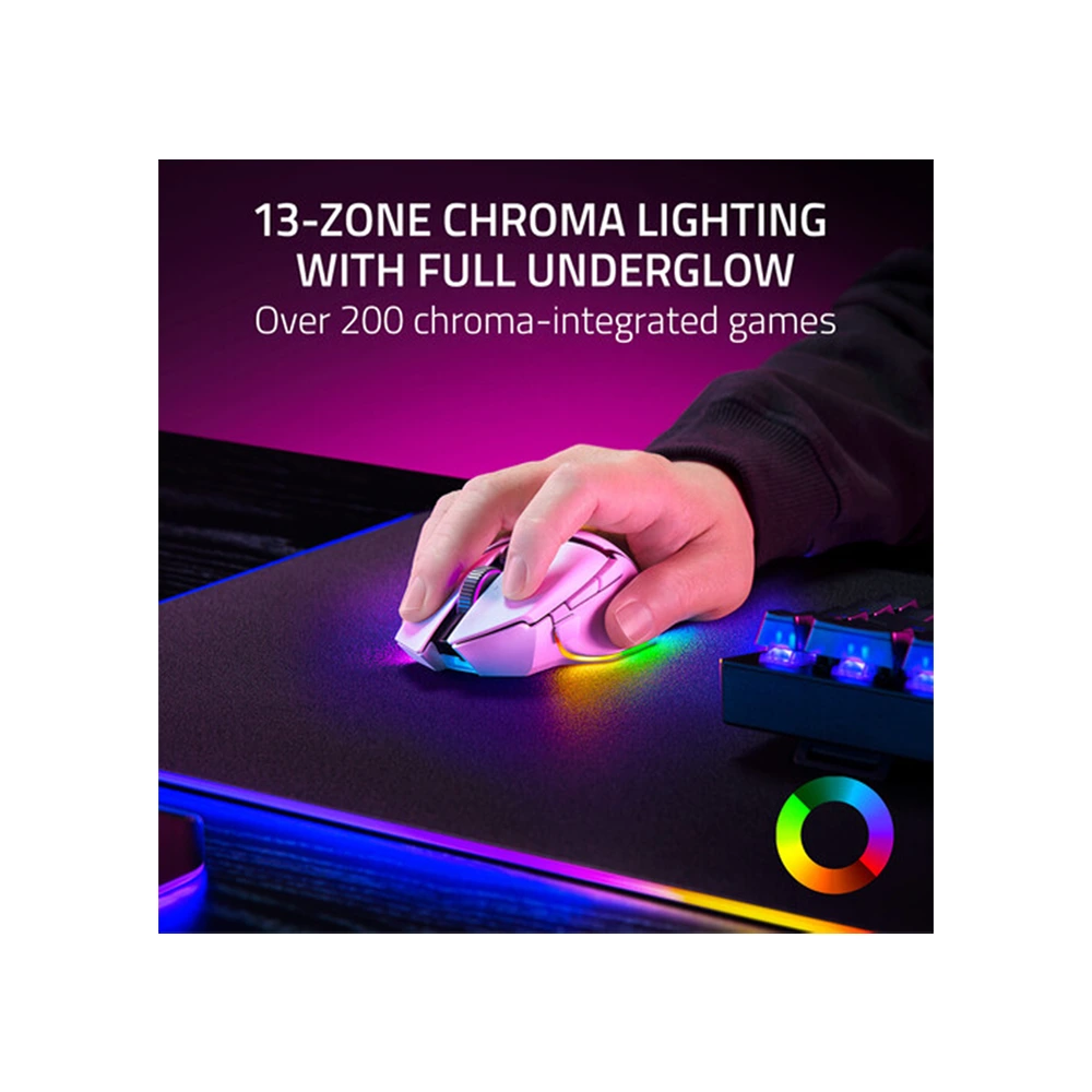 Customize the Basilisk V3 Pro with close to 16.8 million colors, multiple lighting effects, and 13 lighting zones.