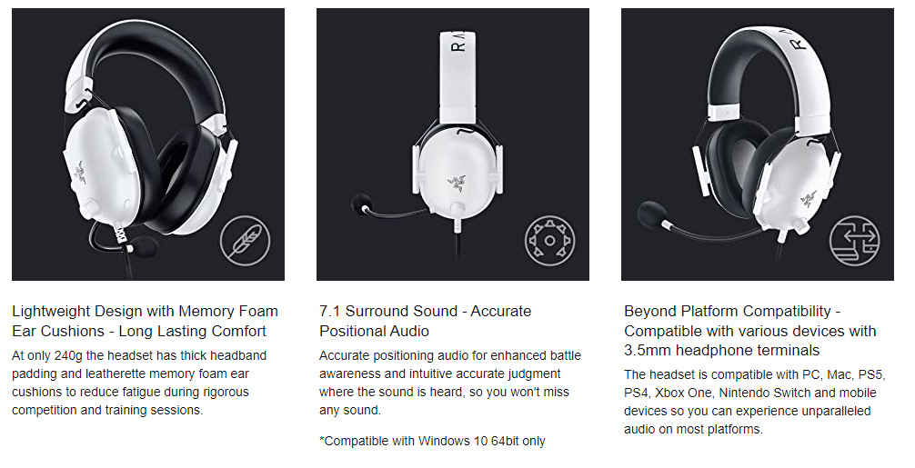 Immersive, 7.1 Surround Sound for Positional Audio: Outfitted with custom-tuned 50 mm drivers, capable of software-enabled surround sound (only available on Windows 10 64-bit)