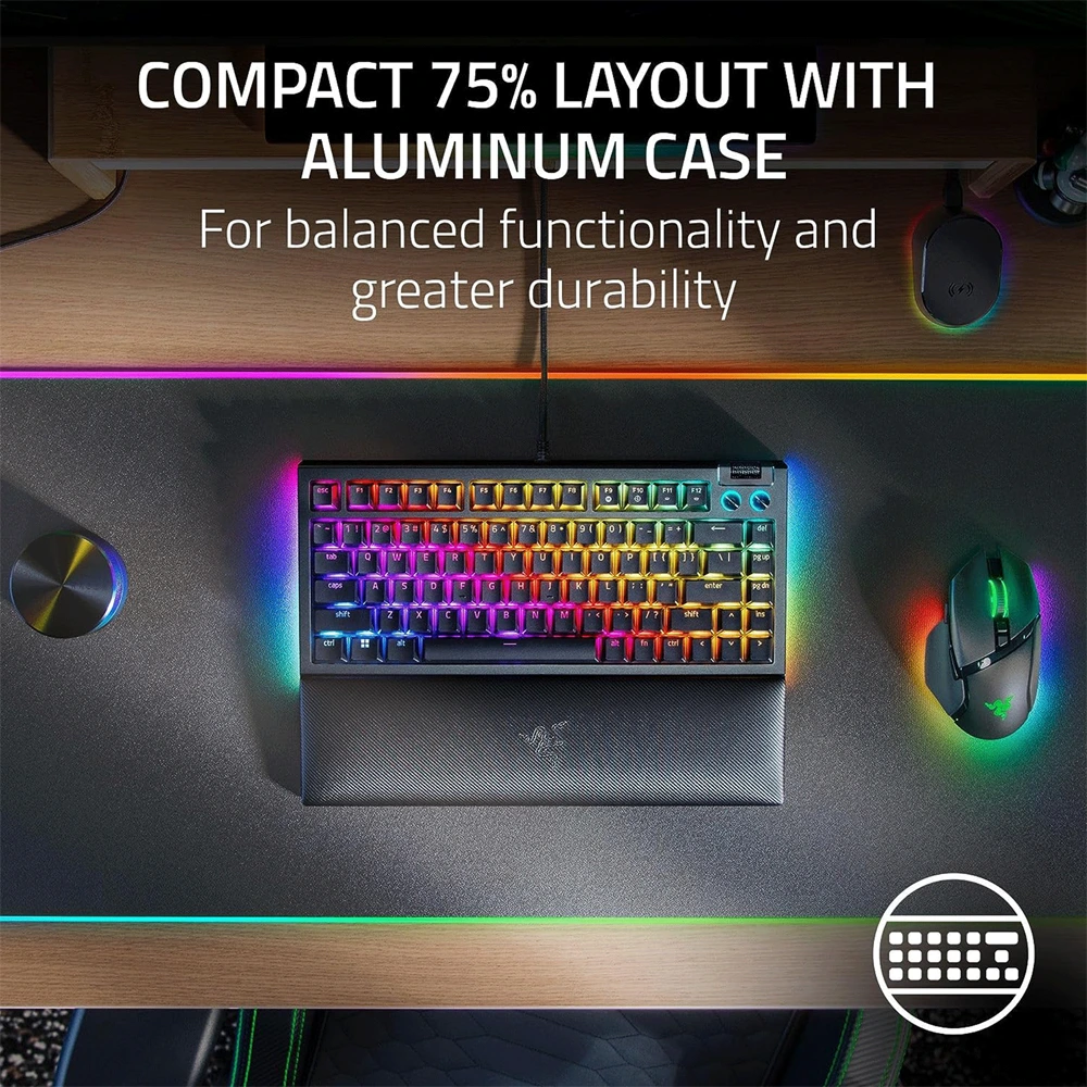 Razer Blackwidow V4 75% Mechanical Gaming Keyboard With Wrist Rest (Orange Tactile Switches) – Black