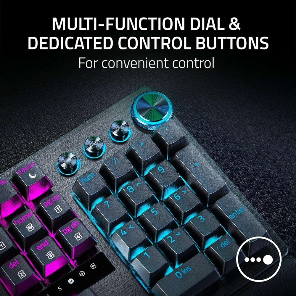 | Special Features | Rapid Trigger Mode Adjustable Actuation Analog Input Dual-step Actuation Quick onboard adjustment for Actuation and Rapid Trigger Razerâ„¢ Synapse enabled N-key Rollover with Anti-ghosting 1000 Hz Polling Rate 5052 Brushed Aluminum Alloy Top Case Magnetic Firm Leatherette Wrist Rest Fully programmable keys with on-the-fly macro recording Gaming Mode |