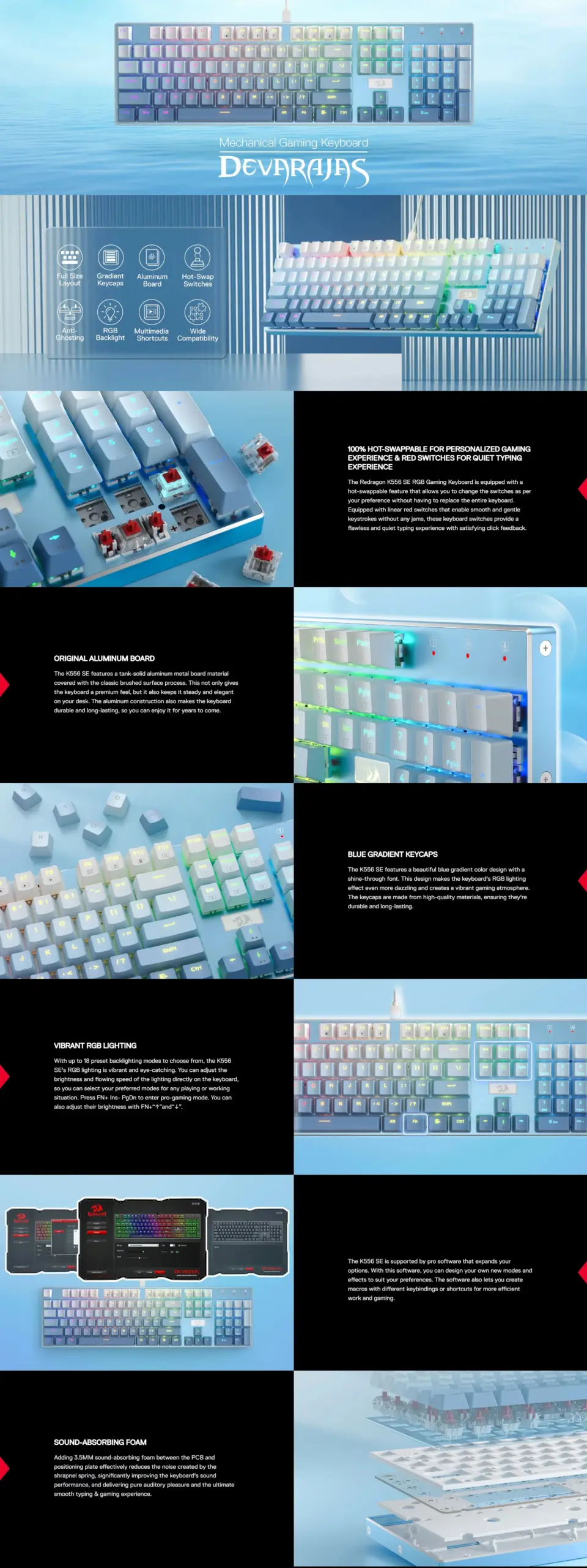 Redragon Devarajas Full-size Hot-swappable Rgb Mechanical Gaming Keyboard Dust-proof Red Switch