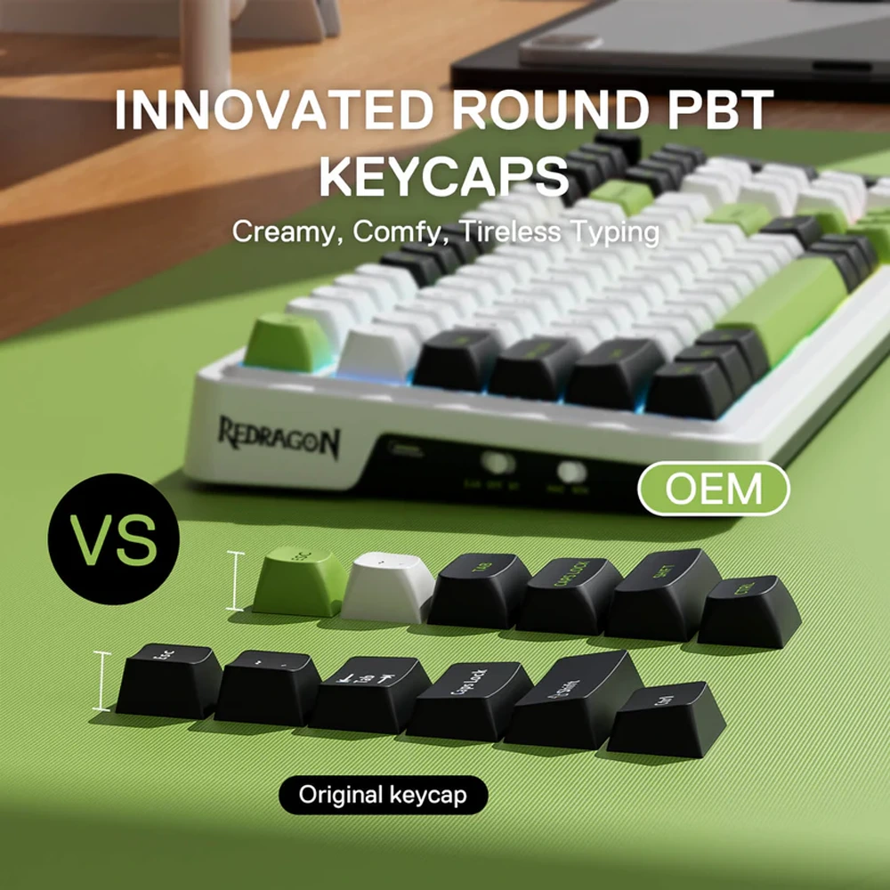 Made from wear-resistant PBT, enjoy no more fading or greasy buildup. Innovated DSA Round design provides a larger contact surface for better finger positioning, ensuring a smooth and refined touch with every keystroke