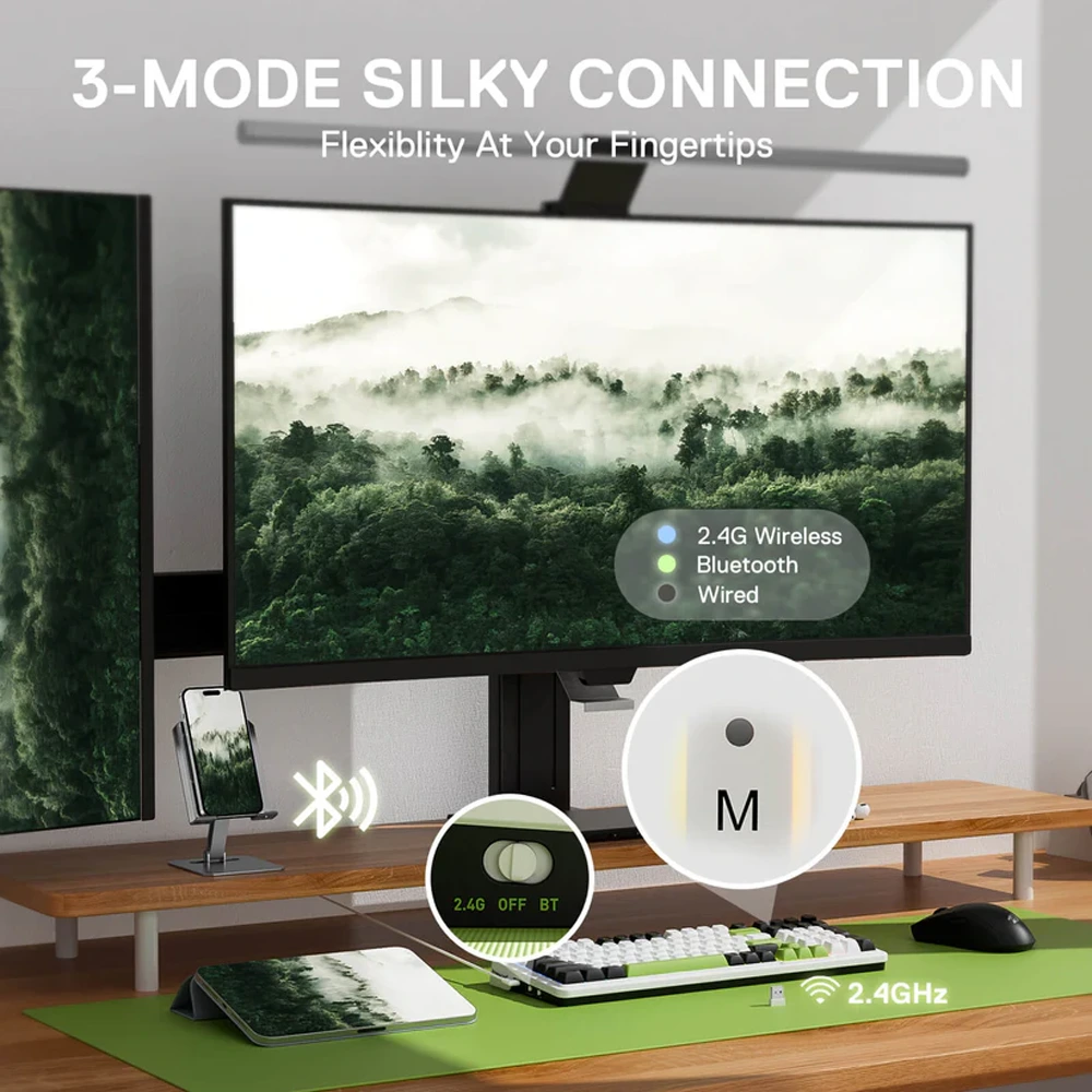 Geared with Redragon advanced tri-mode connection technology, USB-C wired, BT 3.0/5.0 & 2.4Ghz wireless modes which make the user experience upgraded to another level in all fields.