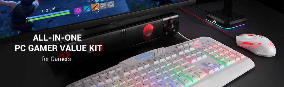 • PC GAMING KEYBOARD AND GAMING MOUSE COMBO: Includes Redragon RGB Backlit Computer Gaming Keyboard and RGB Backlit Gaming Mouse. ALL-IN-ONE PC GAMER VALUE KIT, Fantastic for Gamers (New Improved Version)