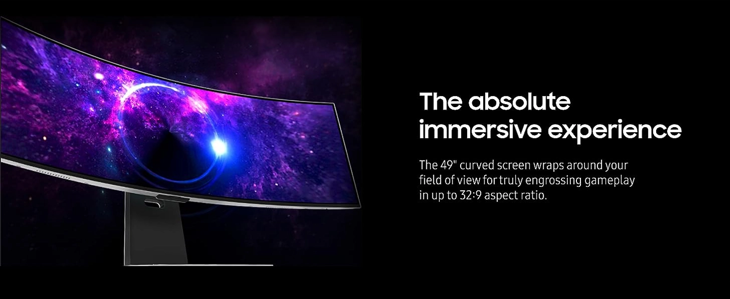 The 49″ curved screen wraps around your field of view for truly engrossing gameplay in up to 32:9 aspect ratio.