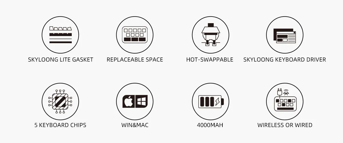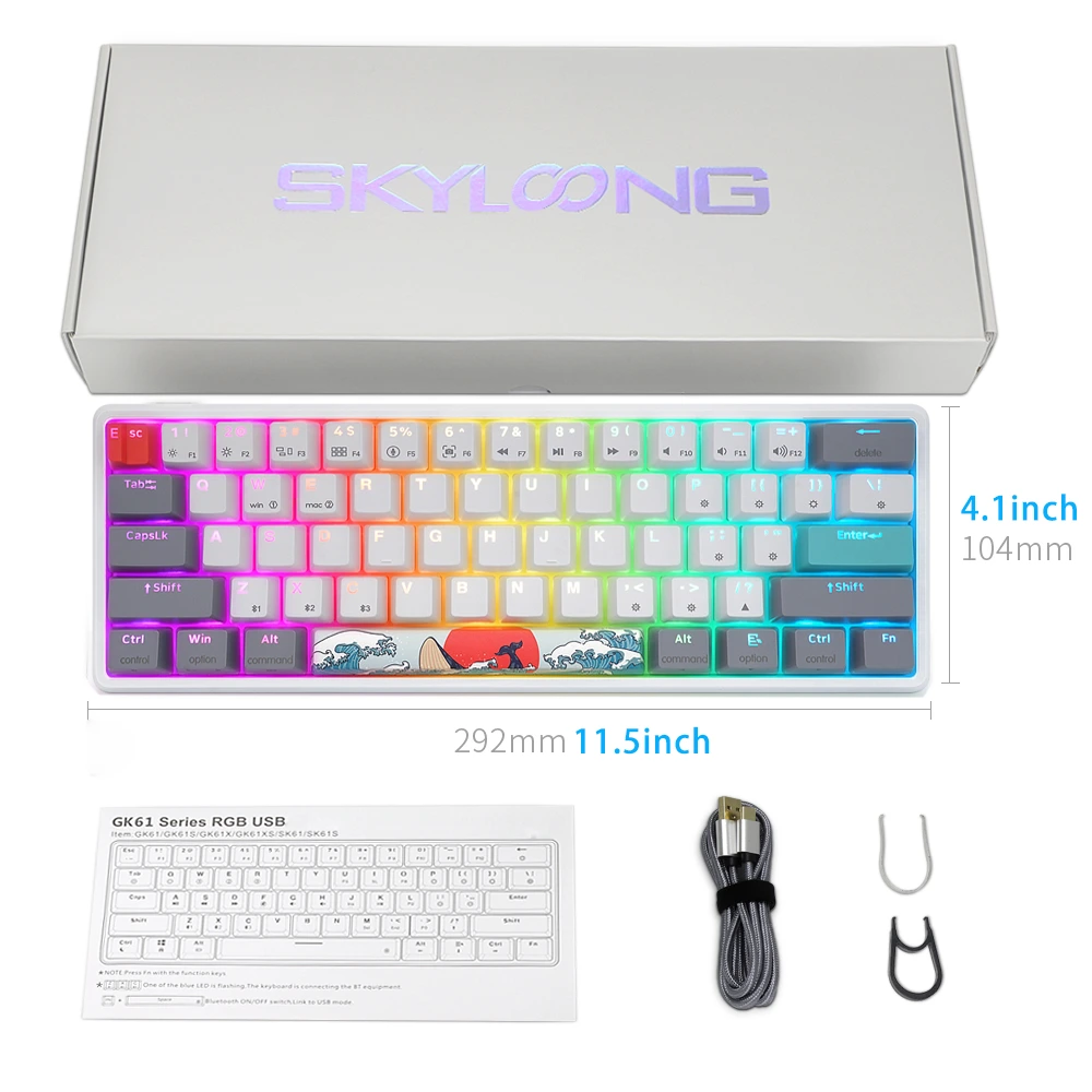 3 RGB control chips, support to adjust 16.8 million color RGB lights; 1 8M flash chip, 1 M3 MCU. These five chips endow the SKYLOONG keyboard with distinctive features. According to your own habits and hobbies, you can adjust the functions and lighting effects of the keyboard, such as keys replacement, RGB lighting DIY, and macro setting and saving. Let your keyboard not only customize the appearance but also the function customization.