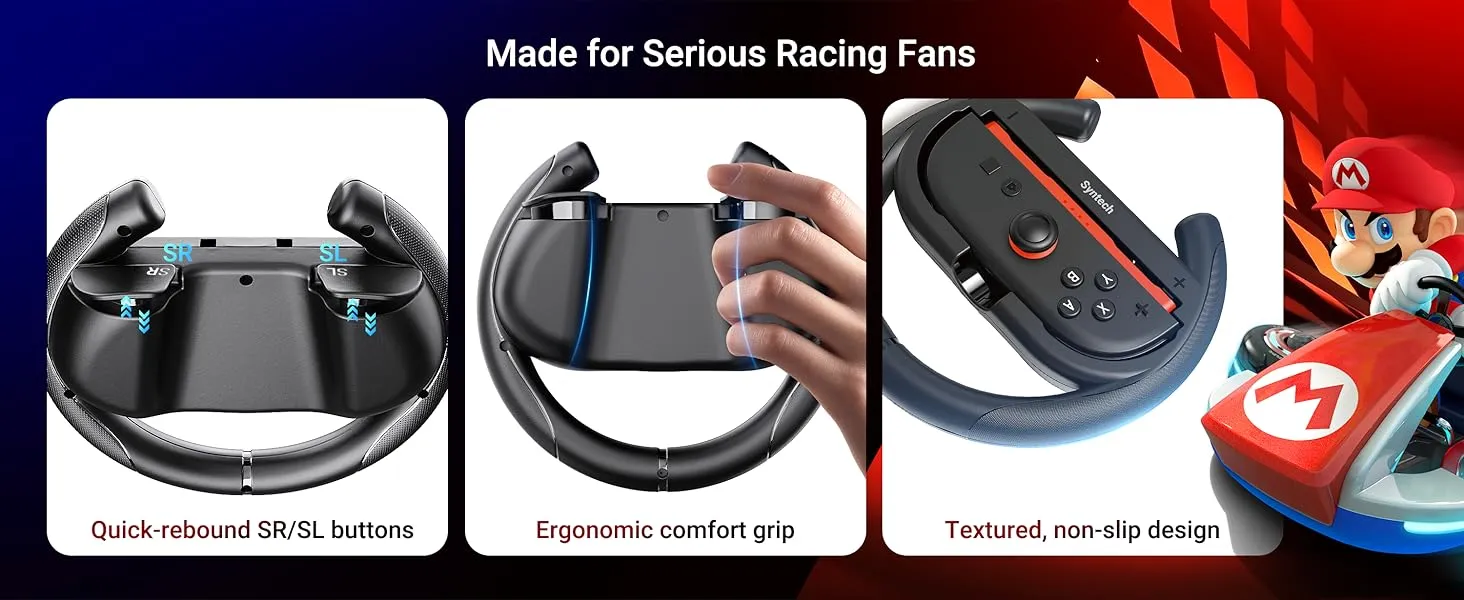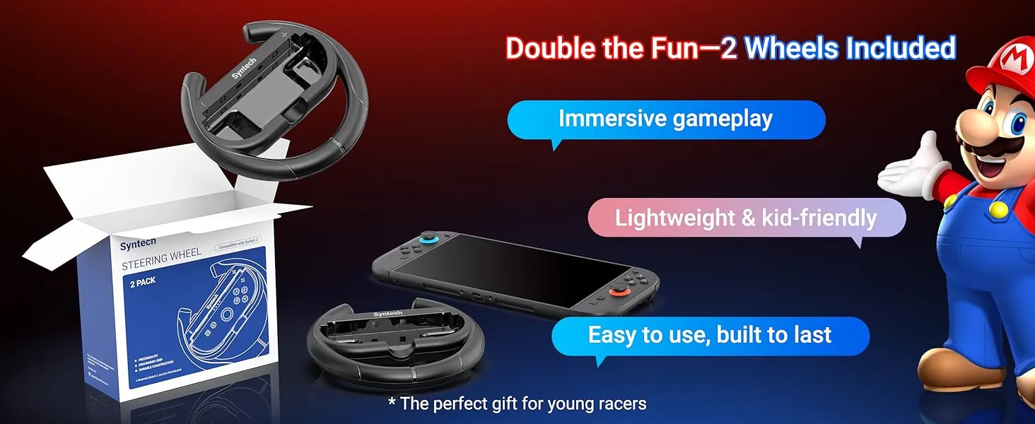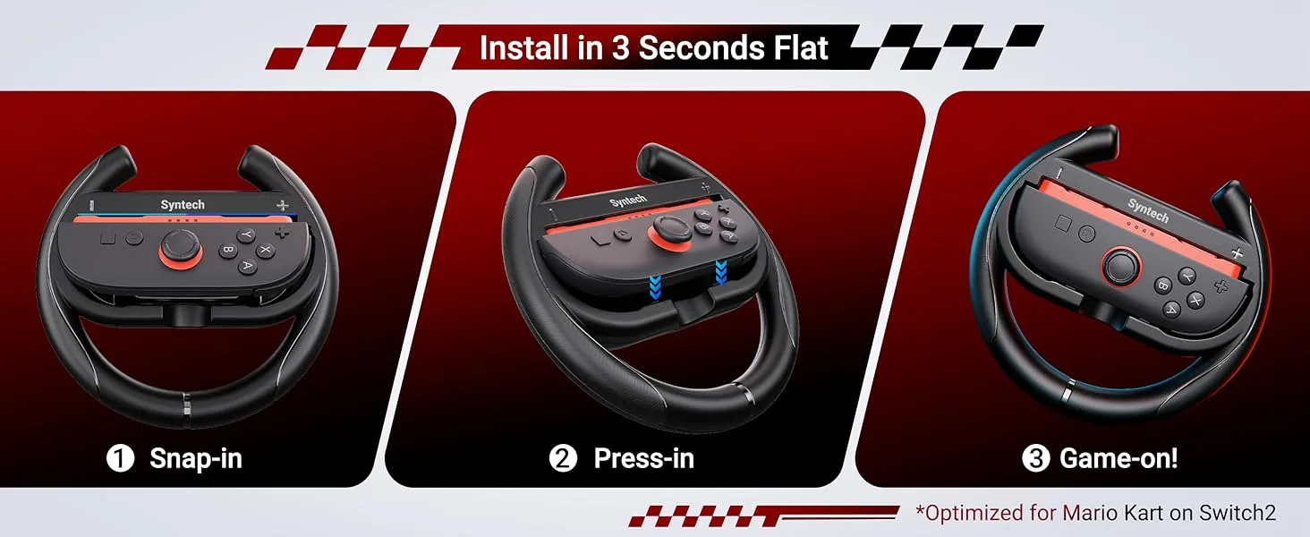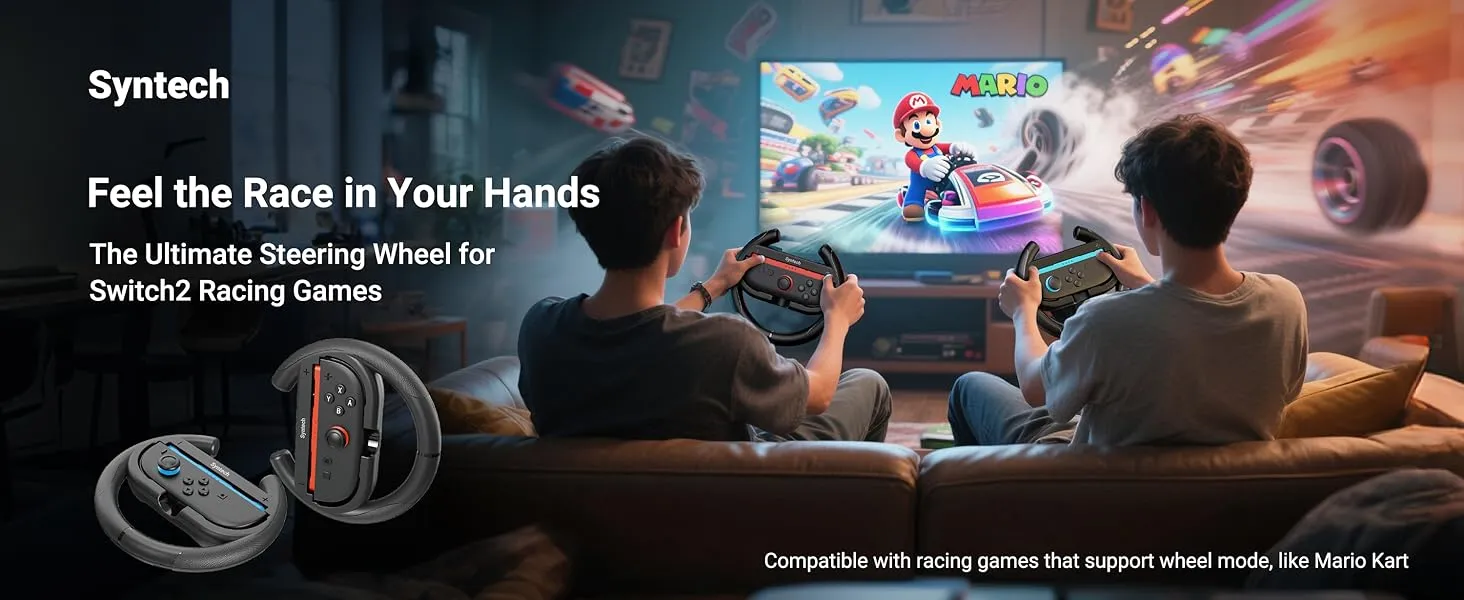 • Perfect Fit for Nintendo Switch2: Designed specifically for Switch2 JoyCons—ideal for racing games like Mario Kart.