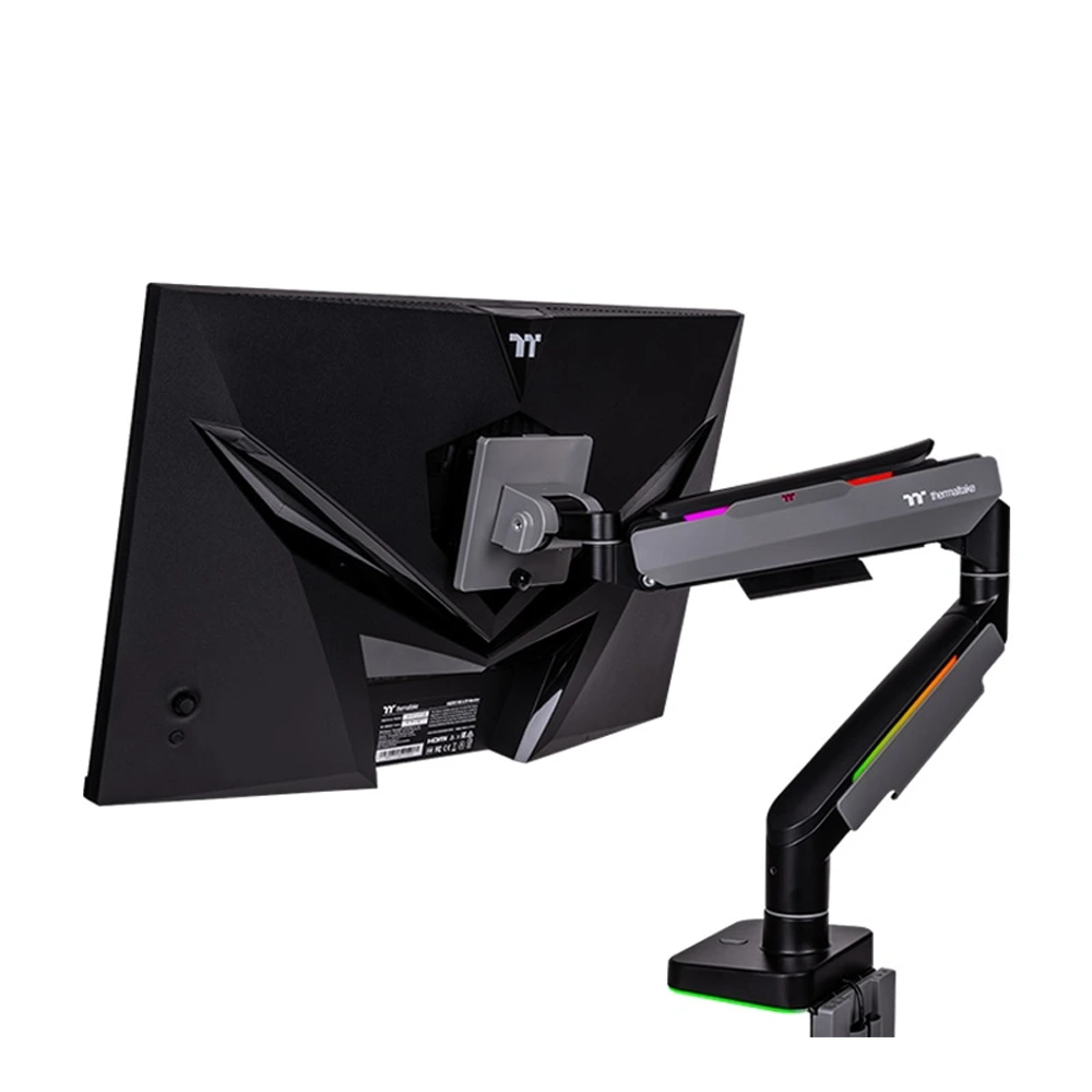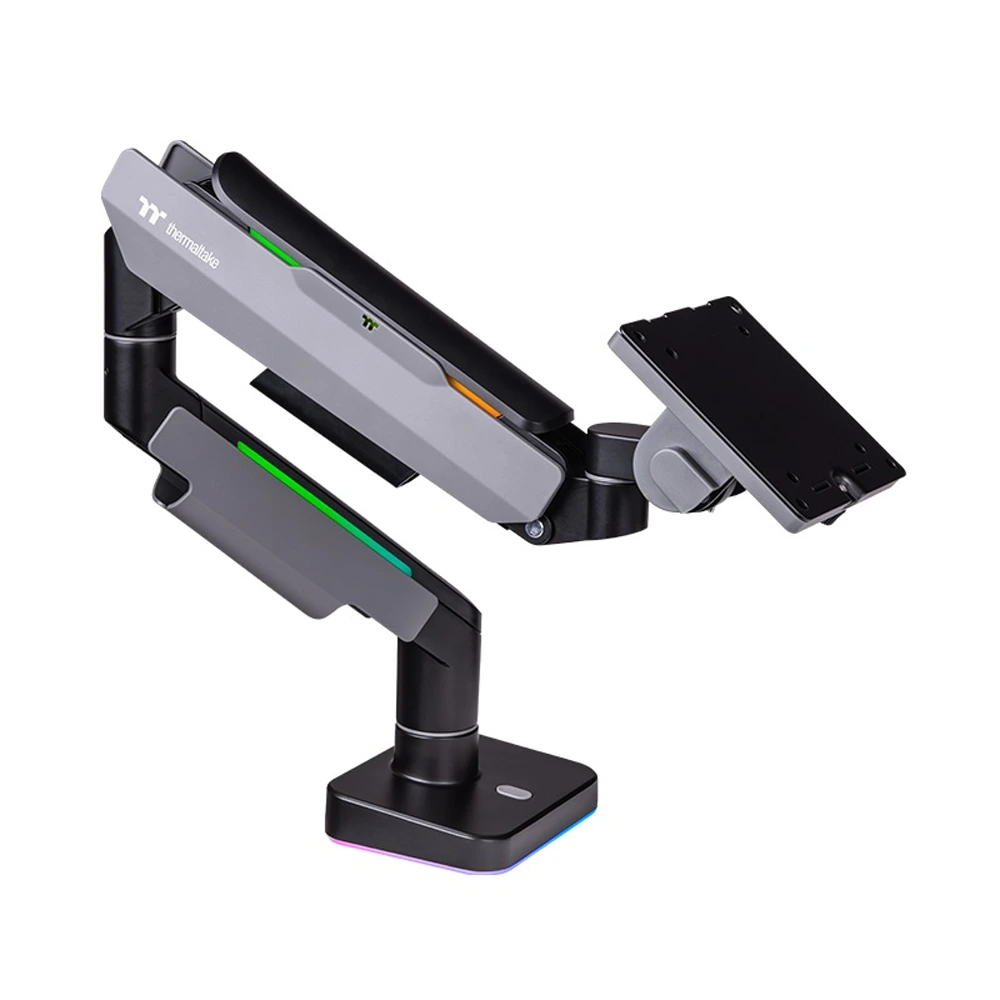 The Thermaltake Single RGB Monitor Arm is made with an optimized tilting structure, providing excellent weight-bearing capacity and smoother adjustment for large flat and curved screens. The arm supports up to one 49” monitor installation possibilities and uses a detachable VESA plate design (75 x 75 mm to 100 x 100 mm).