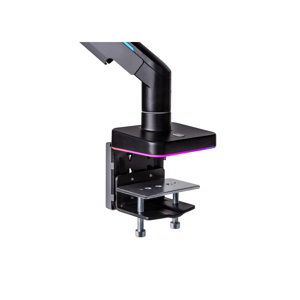 The Single RGB Monitor Arm features an wide range of adjustability, making it easy for gamers to get the best viewing position. The durable gas spring system ensures easy adjustability of your monitor to your desirable position. Also, the monitor can be rotated and tilted effortlessly in any direction, tilt angel from -20° to +50° with screen rotation angel -180° to +180° with swivel angel ±90°.