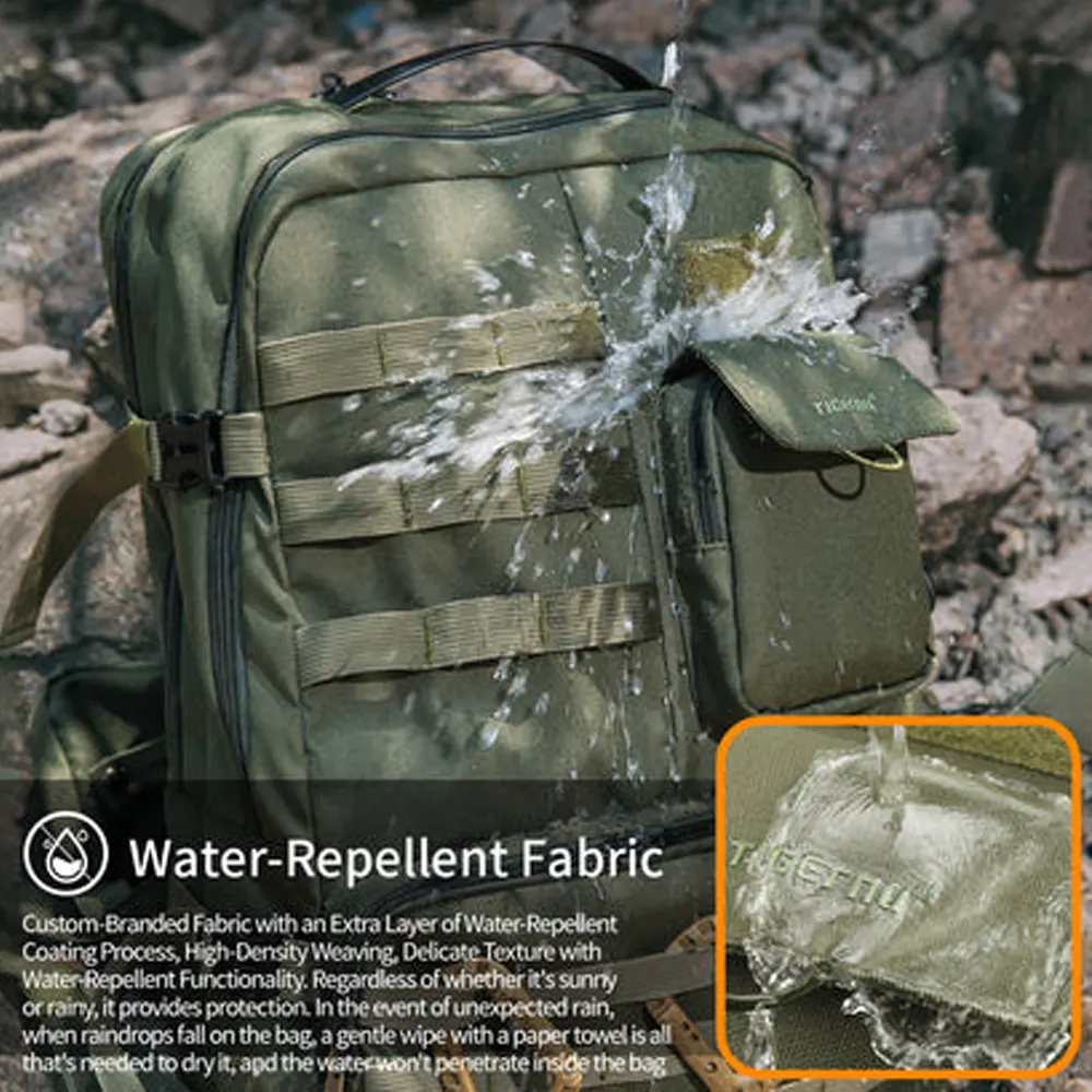 Tactical MOLLE System: The front panel features a heavy-duty MOLLE webbing system, allowing you to customize your loadout by attaching external pouches, carabiners, or tactical tools.